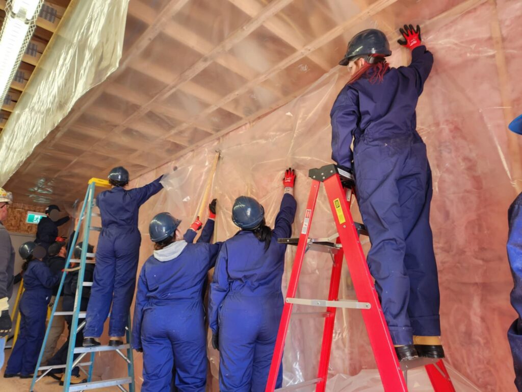 Depuis le lancement du programme pilote, les résidents ont eu l’occasion d’explorer plusieurs métiers, chacun présentant ses propres défis et compétences. Le programme a commencé par le métier d’isolateur, dirigé par Darren LeBlanc, isolateur certifié Sceau Rouge, durant lequel les jeunes ont enfilé leur ÉPI (équipement de protection individuelle) et appris à installer l’isolant, poser les panneaux de fibres et préparer les surfaces à peindre.